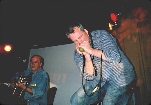 Simeon blows away the cobwebs at Wizz's 65th at the Half Moon Putney April 2004 (photo: Dave Peabody)
